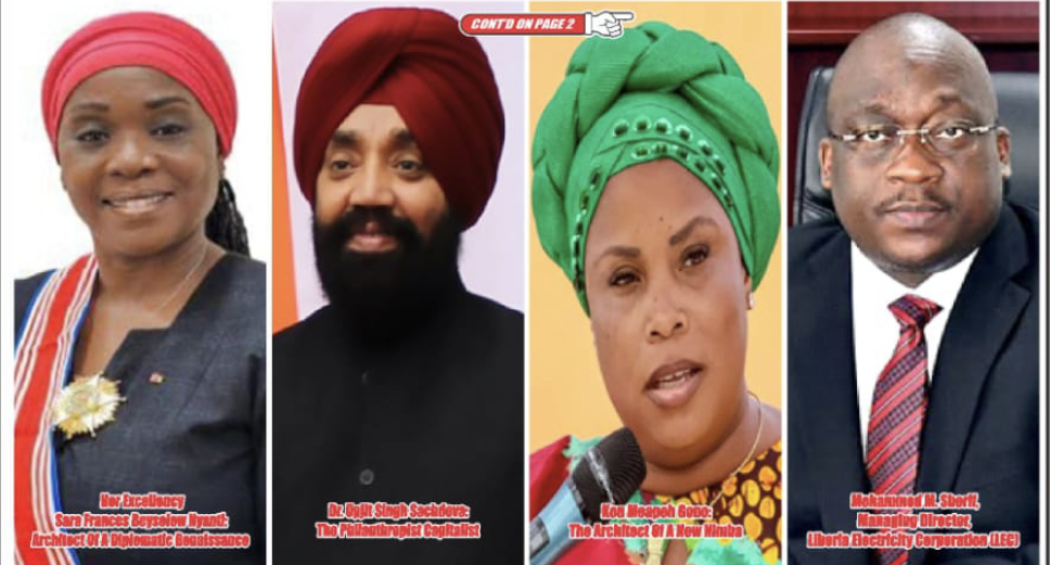 MONROVIA, LIBERIA – This year, four distinct individuals have charted new paths for Liberia, through the revitalization of its foreign policy, delivering stable electricity and a groundbreaking model of compassionate enterprise. They have provided meaningful answers to the challenges and opportunities of 2025. In recognition of their indelible impact, WomenVoices Newspaper awards our 2025 Personalities of the Year honor to Her Excellency Sara Frances Beysolow Nyanti, Minister of Foreign Affairs, Dr. Upjit Singh Sachdeva, the philanthropist and industrialist, Mr. Mohammed M. Sherif, Managing Director, Liberia Electricity Corporation (LEC), and Madam Kou Meapeh Gono, Superintendent of Nimba County